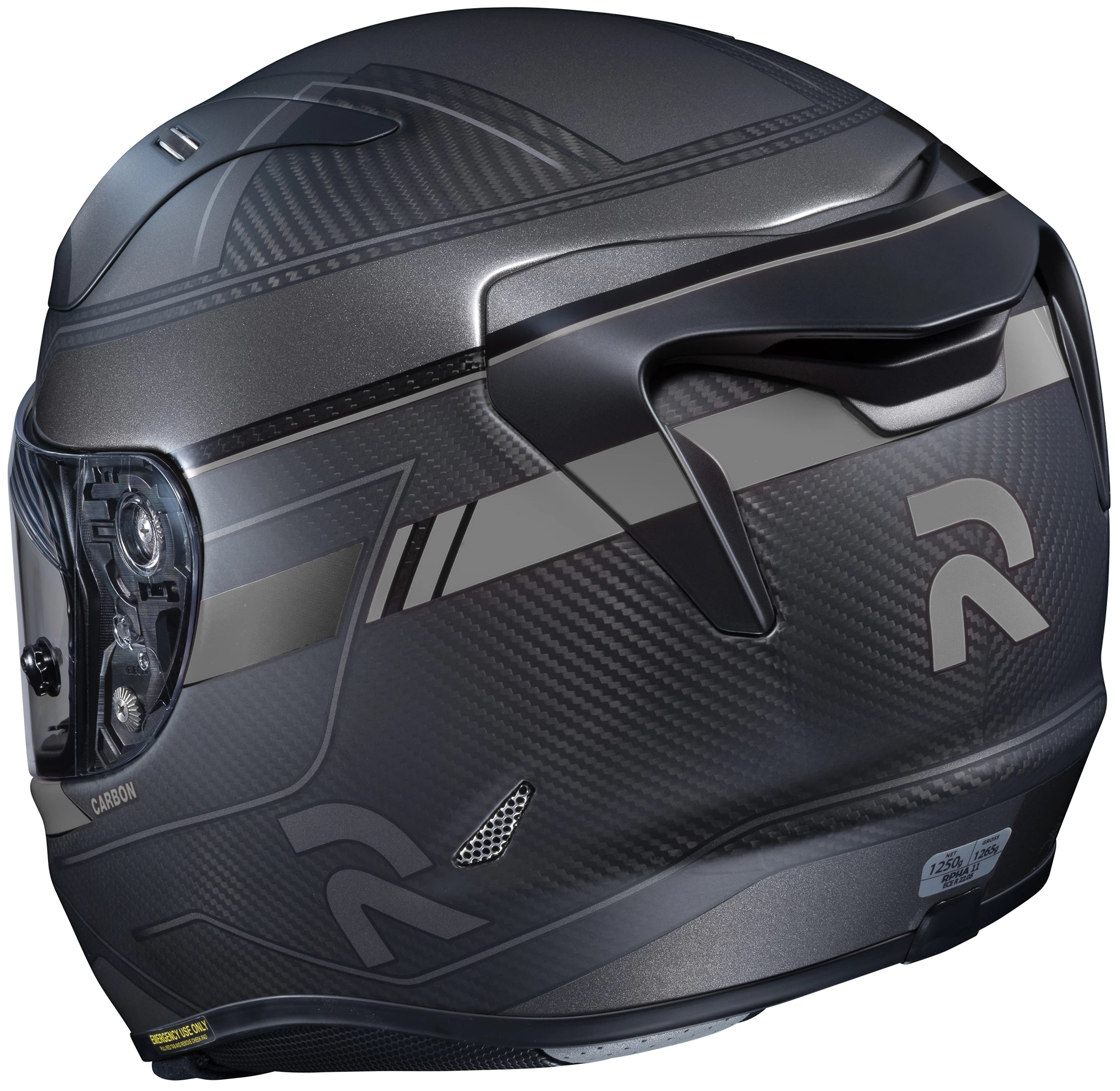 Built for the racetrack, the RPHA 11 Pro is HJC’s premium sport helmet, designed with an aerodynamic shell structure for extreme performance at maximum speeds. The Carbon Fiber Outer Shell provides a lightweight and comfortable helmet with enhanced Shock-Resistant performance. The enlarged eye port, increased field of view and outstanding airflow ventilation system cater to sport riders in the tucked position. Additional safety features include: Reflective patches on the rear neck area and Emergency Release Cheek Pad System, for safe and quick helmet removal in emergency situations