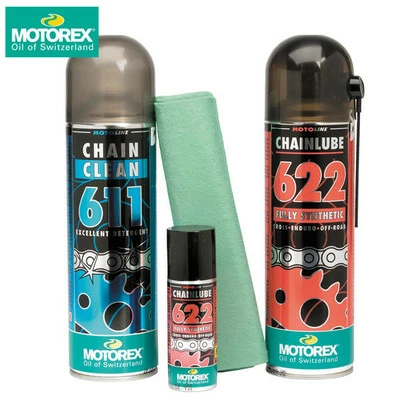 - Kit includes 500ml can of Offroad Chain Lube, 500ml can of Chain Clean Degreaser, 56ml refillable Offroad Chain Lube can and a large green microfiber cloth